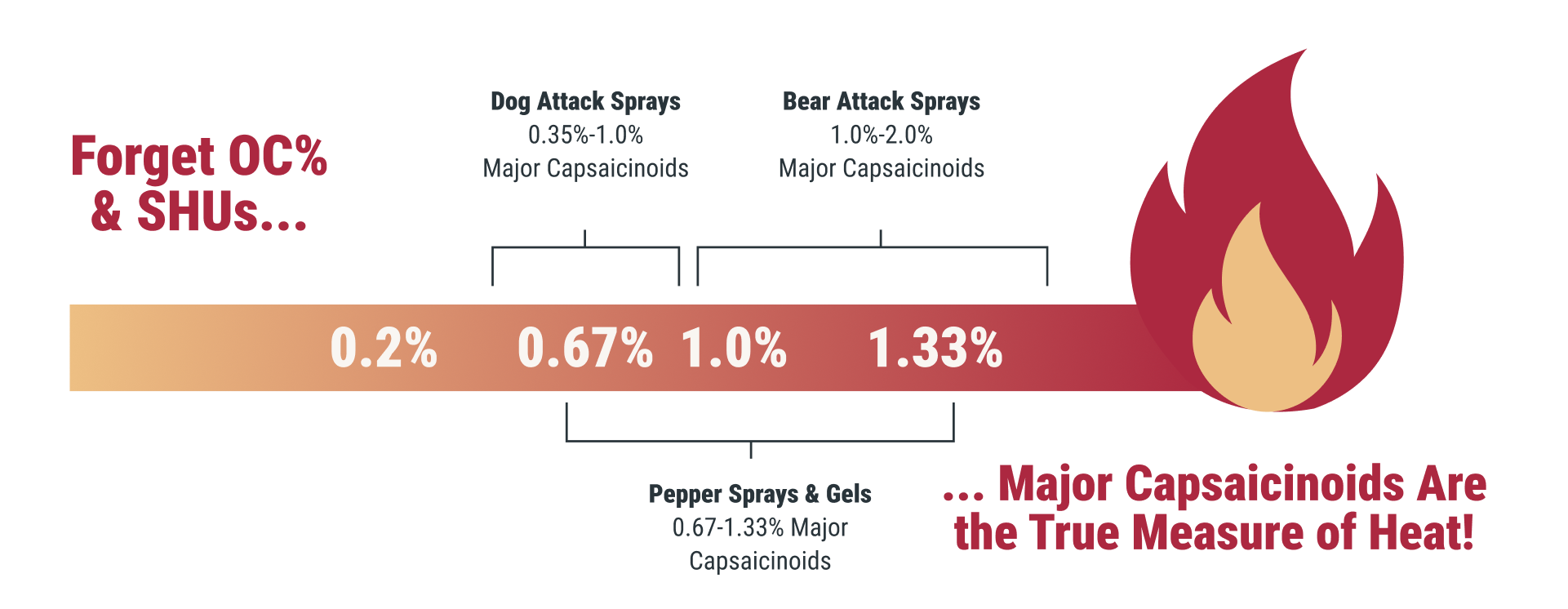 FYI: SABRE Pepper Sprays contain 1.33% MC. That’s 67x hotter than your favorite hot sauce.